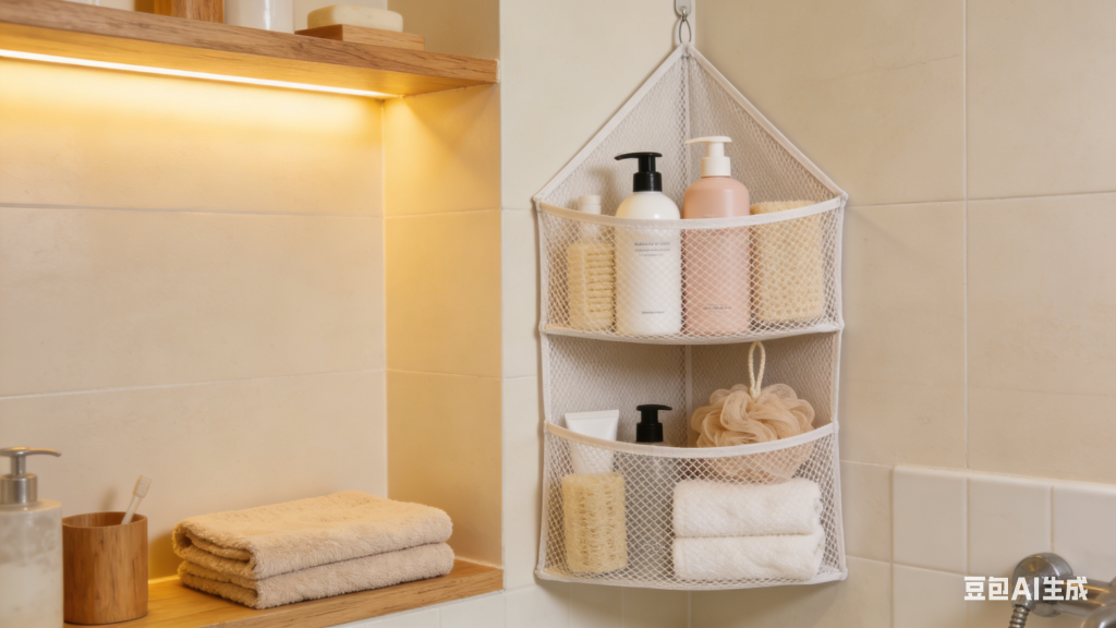 6. Hanging Corner Mesh Organizer (Budget-Friendly Quick Fix)